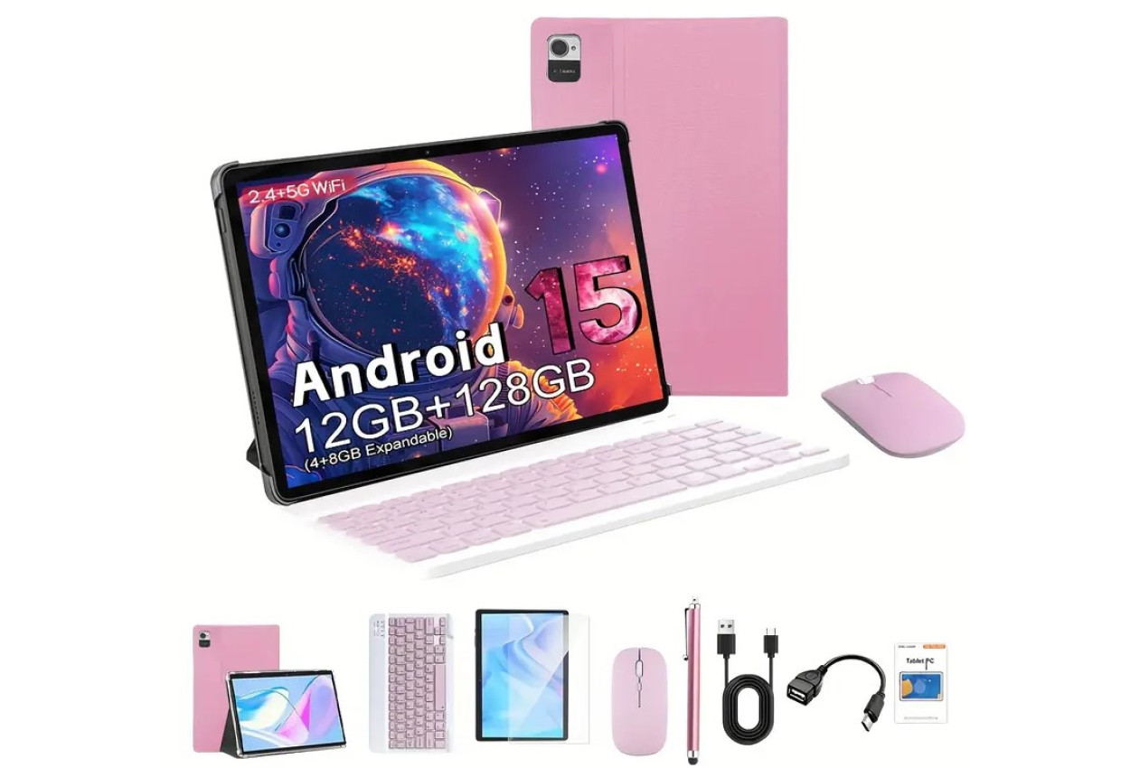 Tablet 2in1, 10.1-inch IPS Display Android 15 [PinkColor]