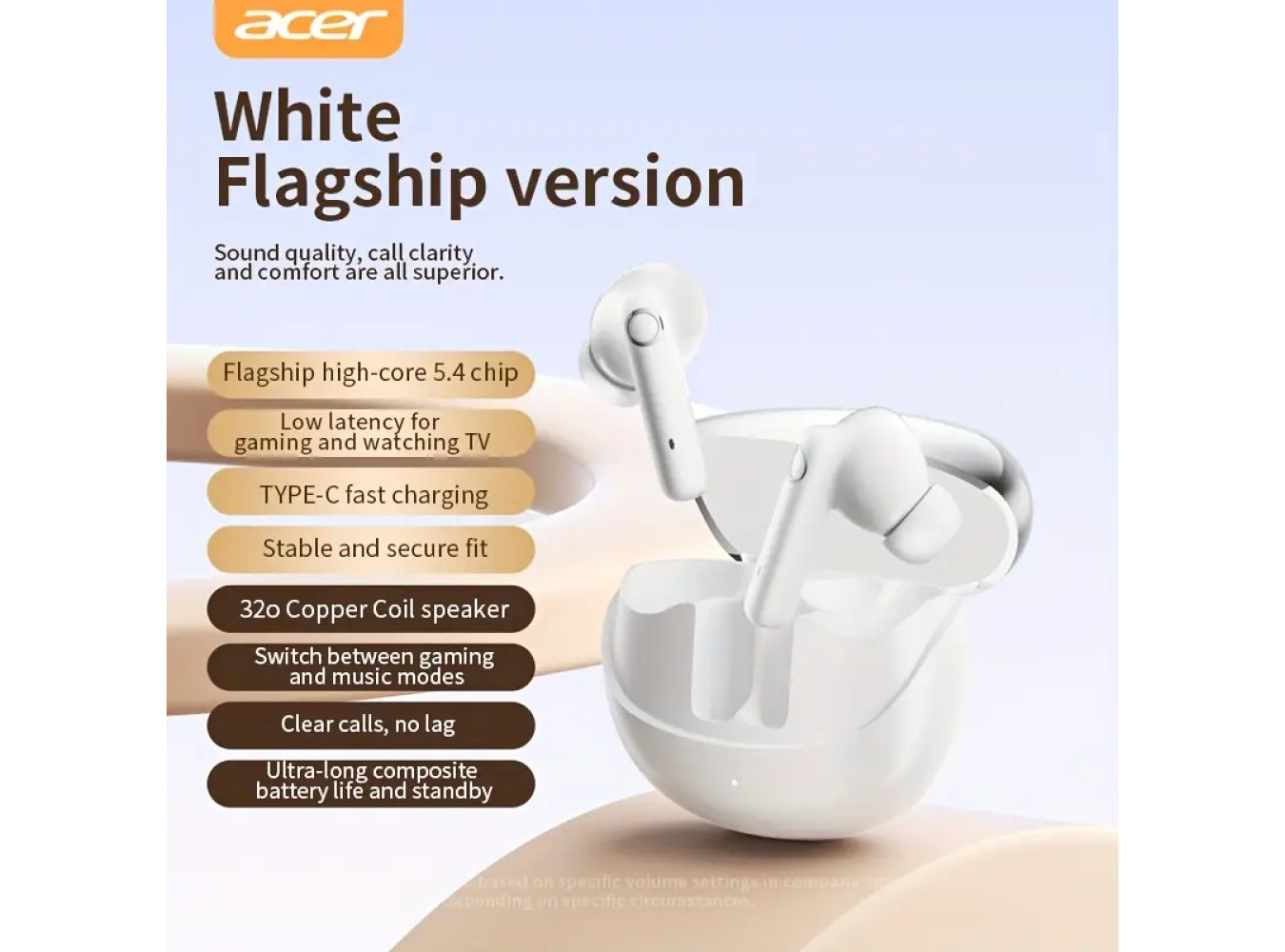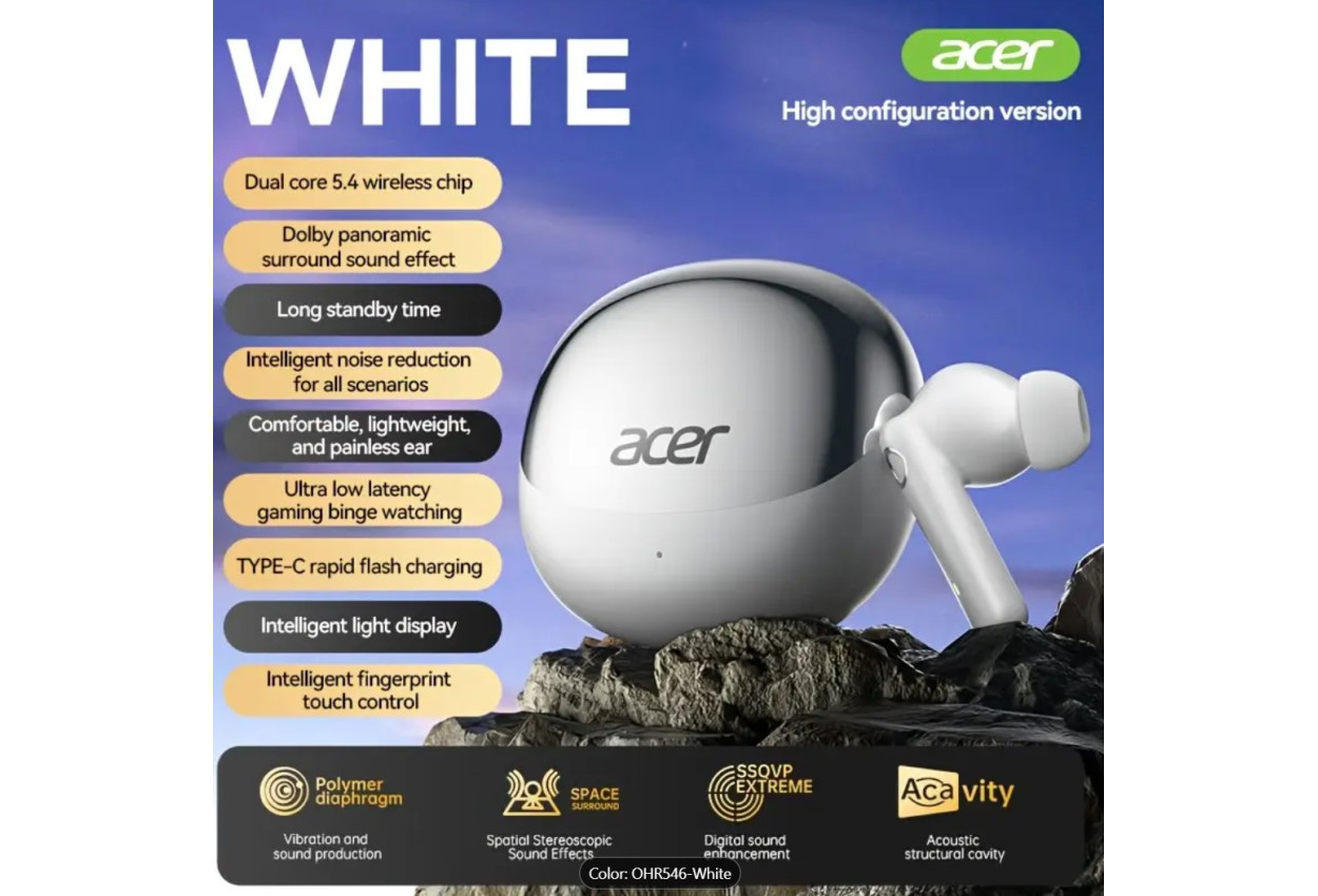 This is Brand New ACER HiFi True Wireless Stereo (TWS) Earbuds combine high-definition stereo sound with a sleek and lightweight design for comfortable all-day wear. Powered by a dual-core Bluetooth 5.4 wireless chip, these earbuds deliver stable connections and quality audio with enhanced sound clarity and deep bass.