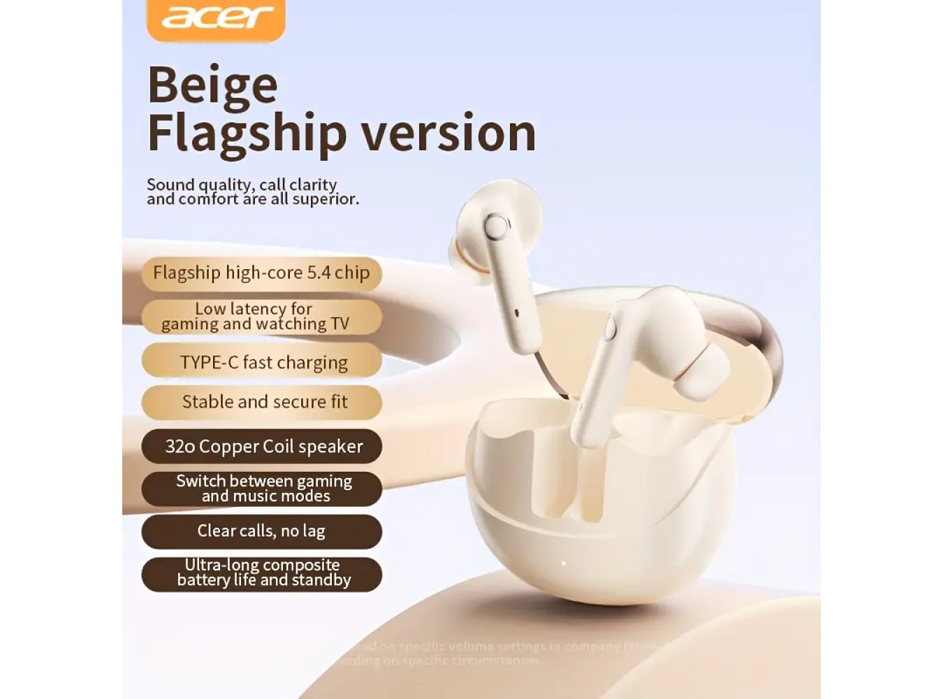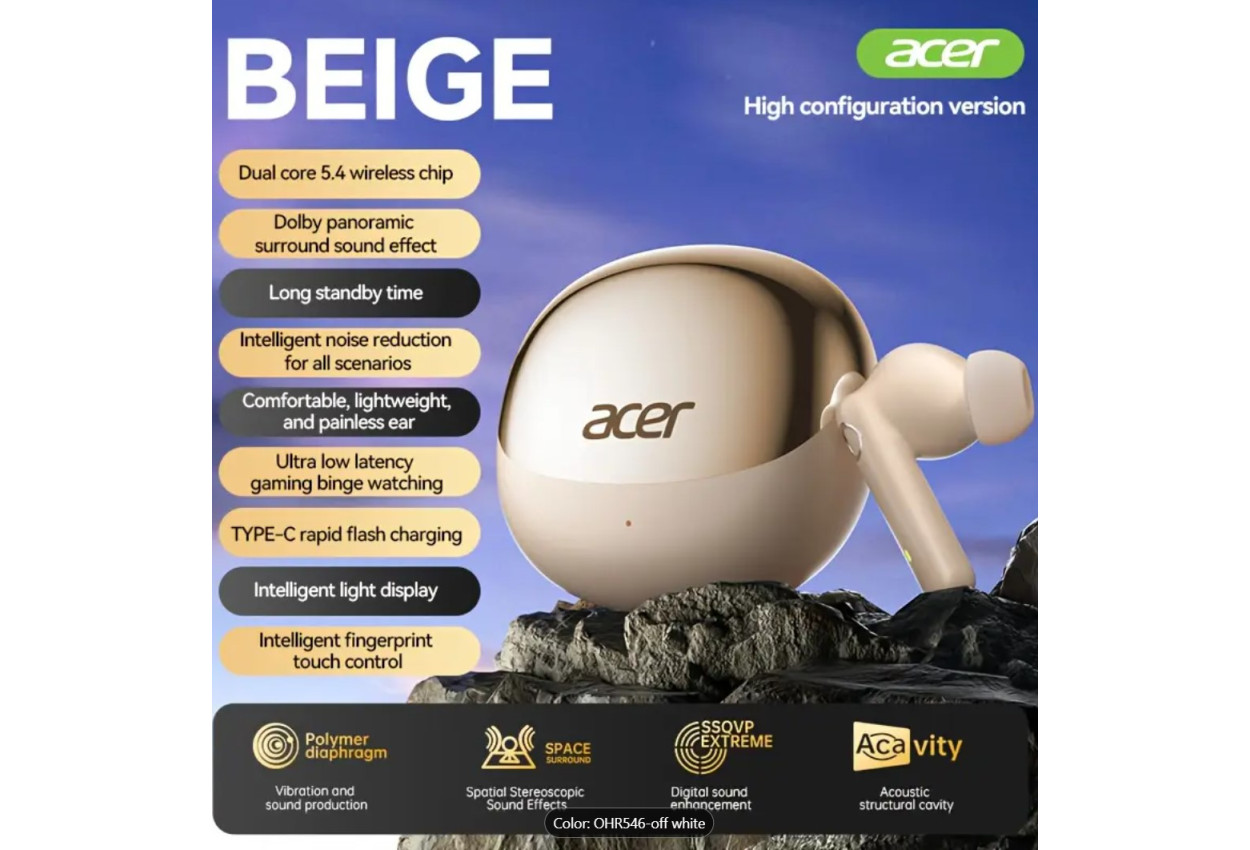 This is Brand New ACER HiFi True Wireless Stereo (TWS) Earbuds combine high-definition stereo sound with a sleek and lightweight design for comfortable all-day wear. Powered by a dual-core Bluetooth 5.4 wireless chip, these earbuds deliver stable connections and quality audio with enhanced sound clarity and deep bass.