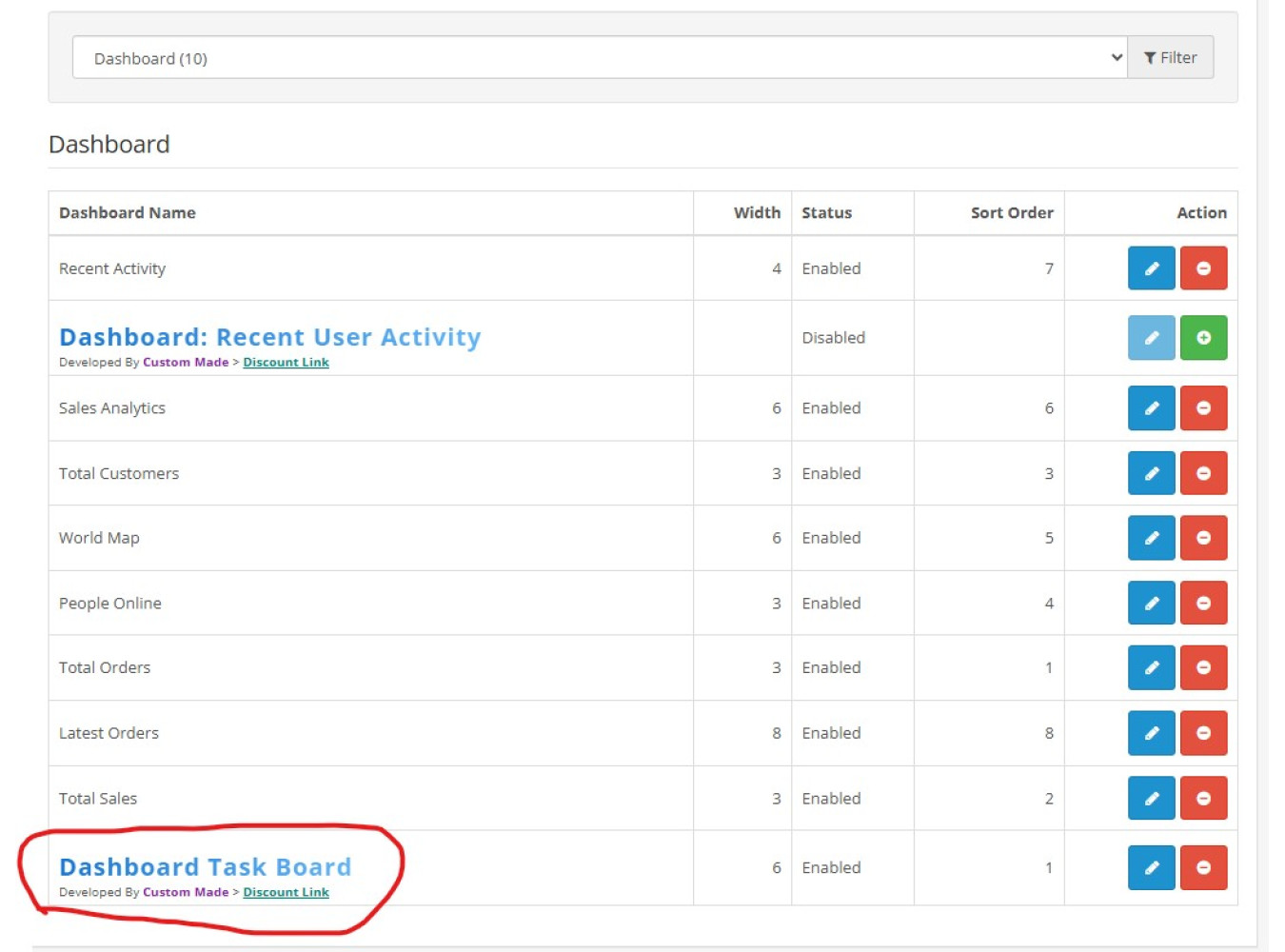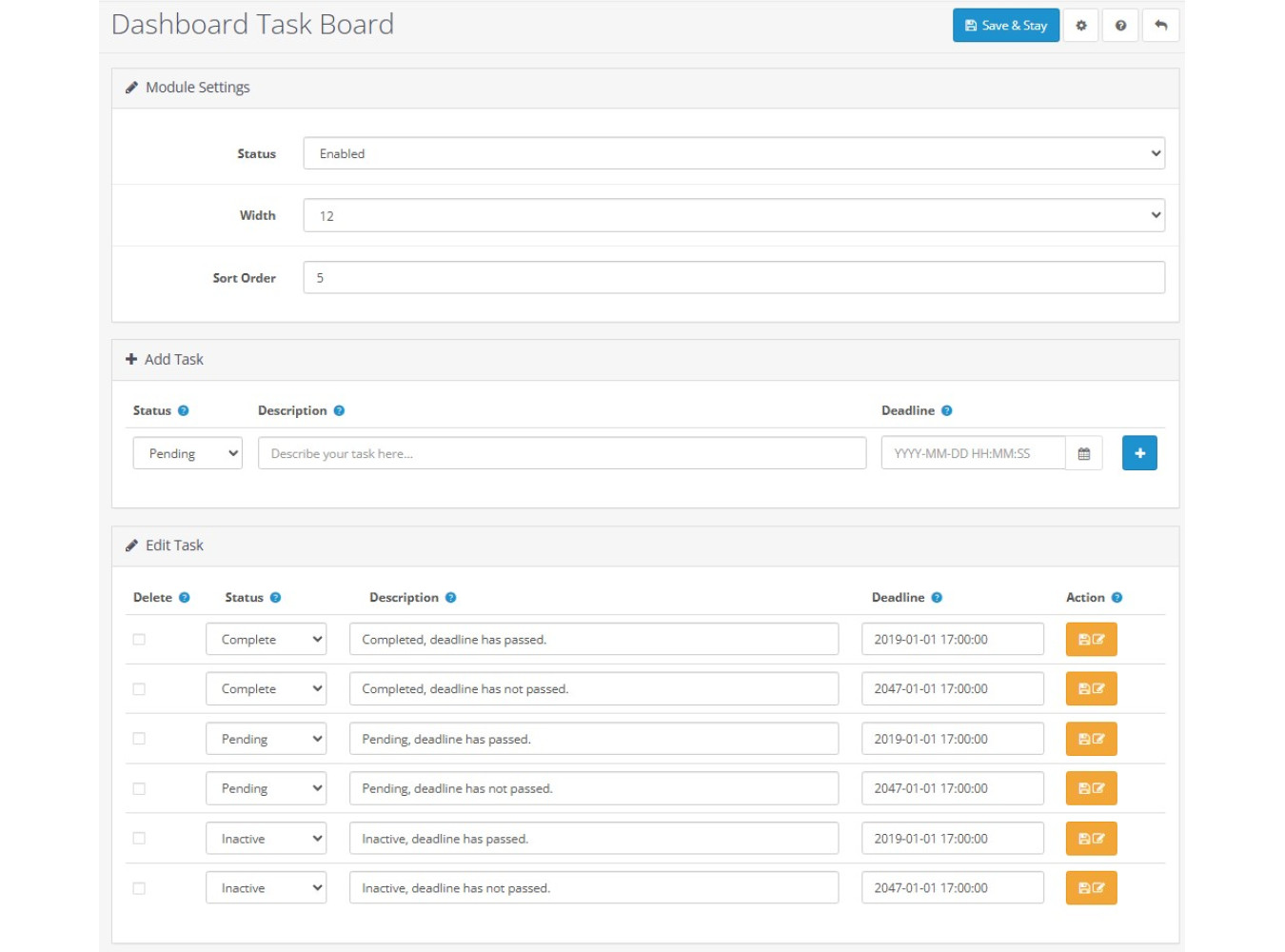 Feature: Adds a "Task Board" widget directly to your OpenCart admin dashboard.