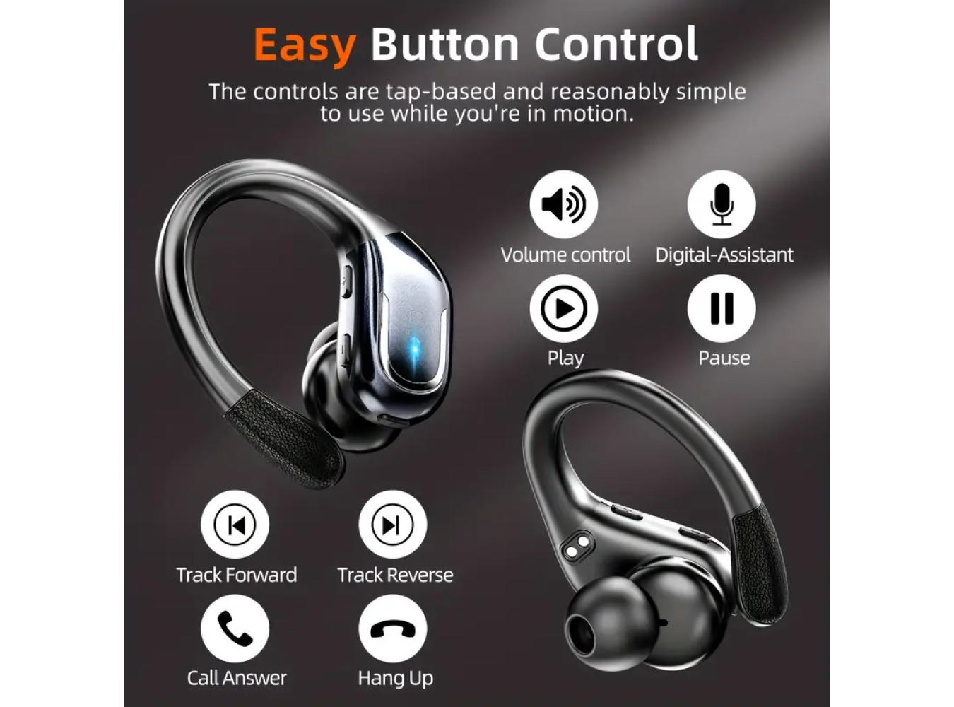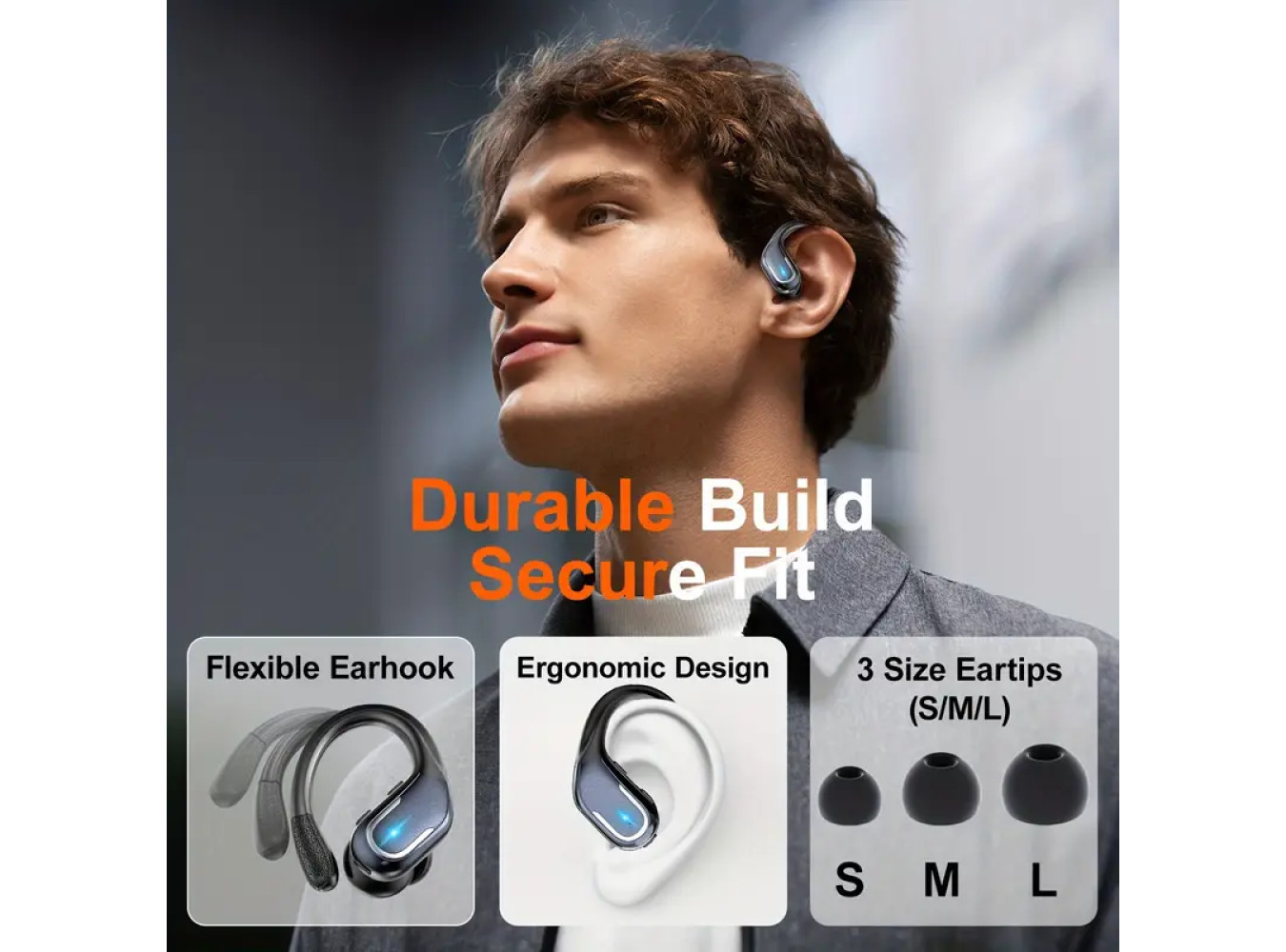 Secure Earhook Design: Comfortable and stable fit for active use in sports and workouts.