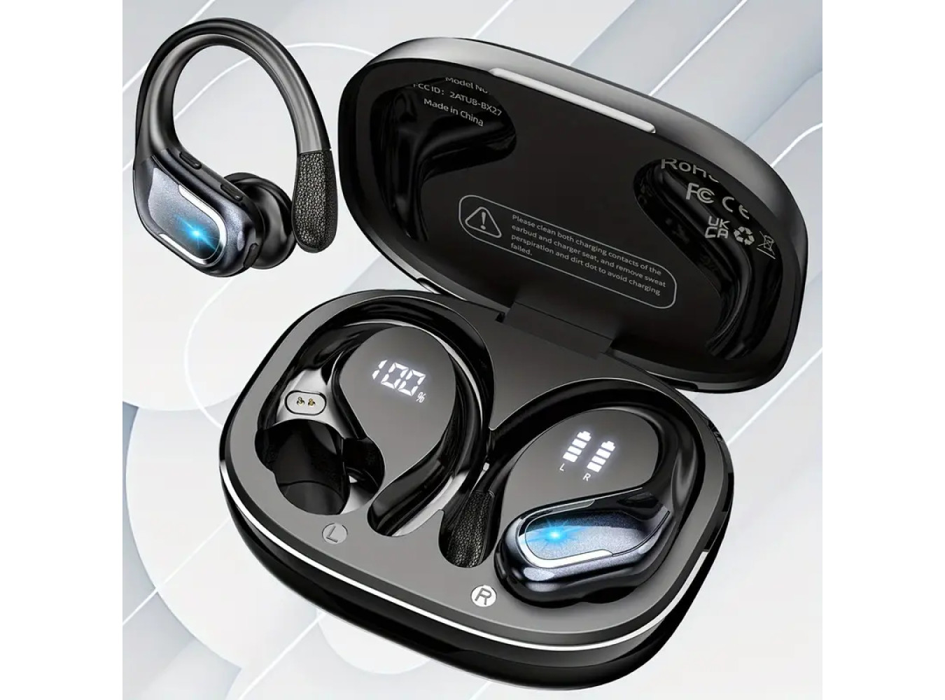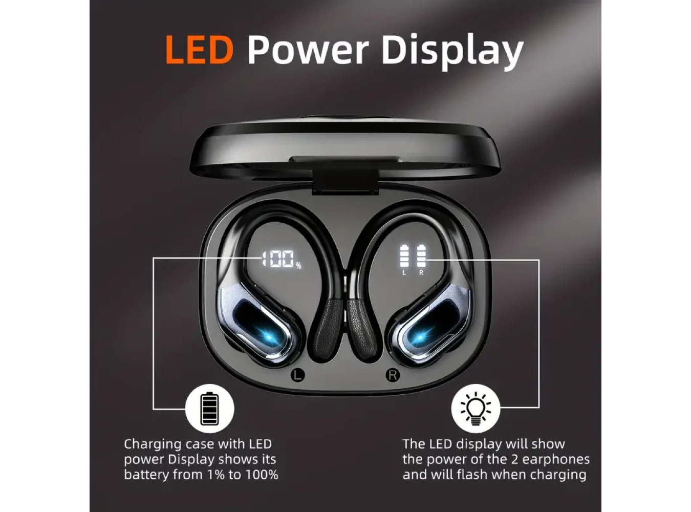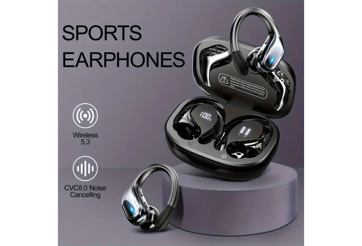 This is Brand New wireless earbuds combine stylish design and powerful audio performance tailored for active lifestyles. Featuring a dual-LED display on the charging case, they provide clear battery status at a glance for both earbuds and case. The secure earhook design ensures the earbuds stay firmly in place during running, sports, or gym workouts, delivering stable comfort without falling out.
