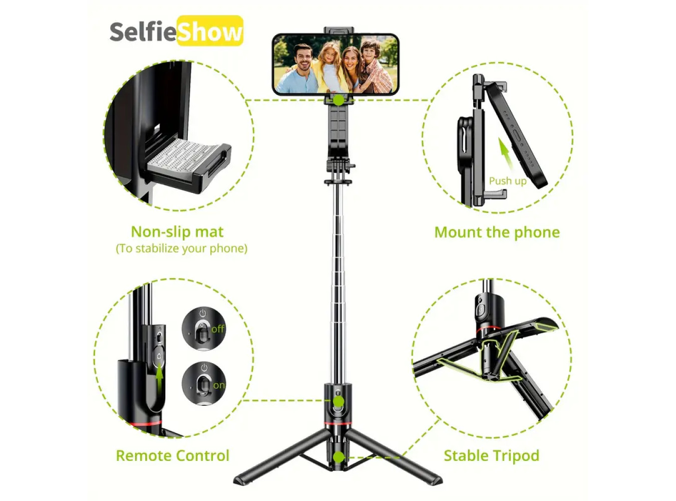 Super Long Cell Phone Wireless Selfie Stick Tripod Wireless Remote Extendable Phone Holder,