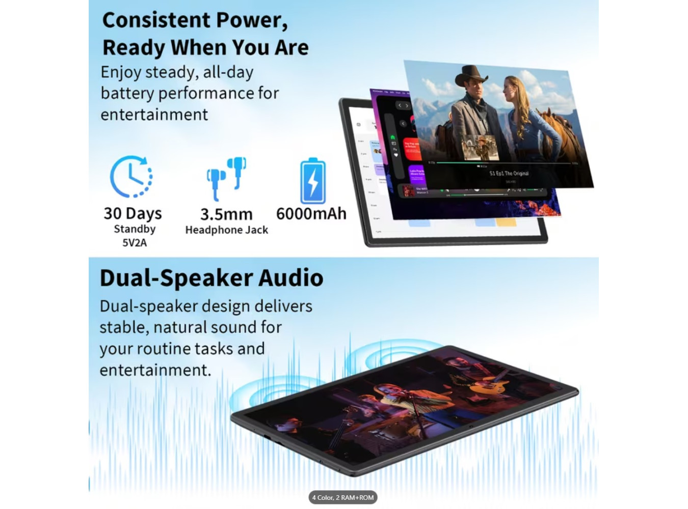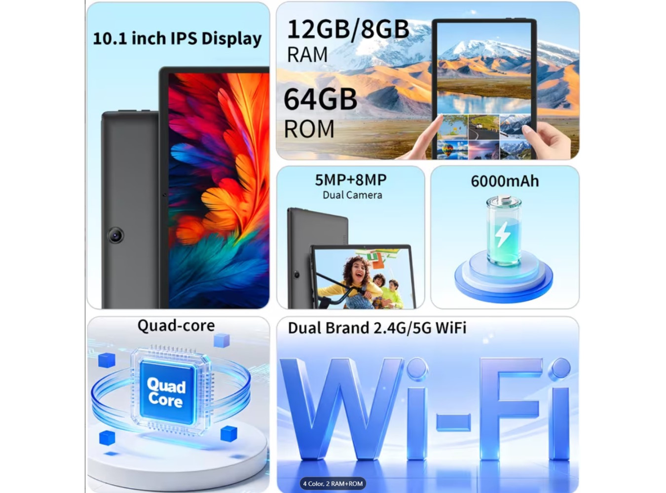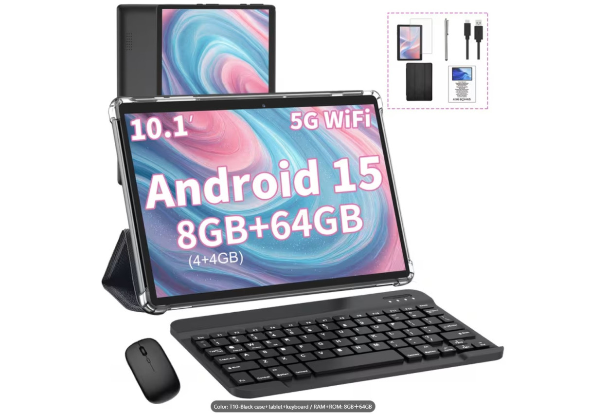 10.1-Inch Android 15 Tablet 12/64GB (Keyboard/Mouse/Case)