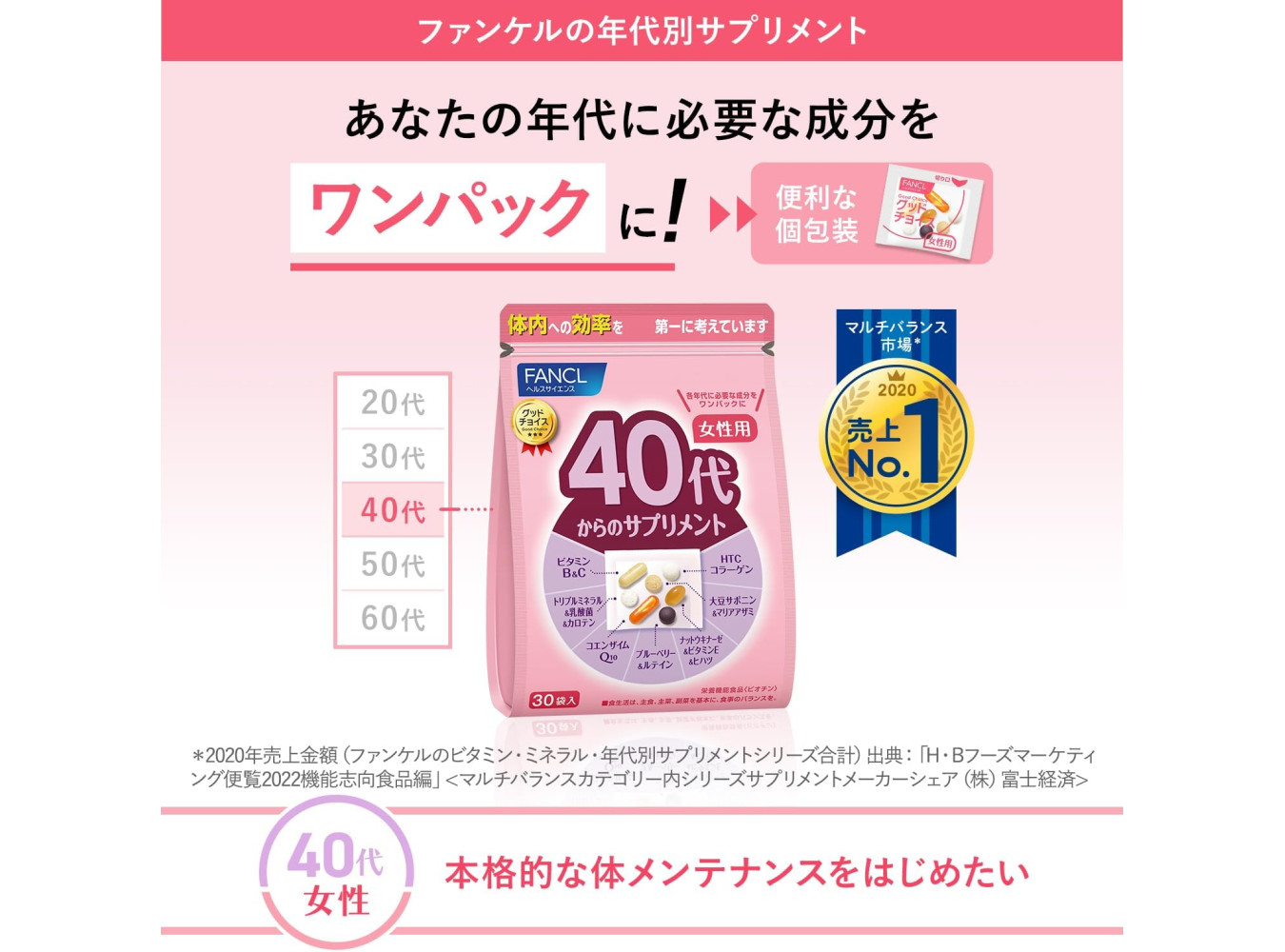 We’ve taken supplements made with ingredients that are more highly tailored towards supporting your health through your 40s, and bundled them into a single pack.