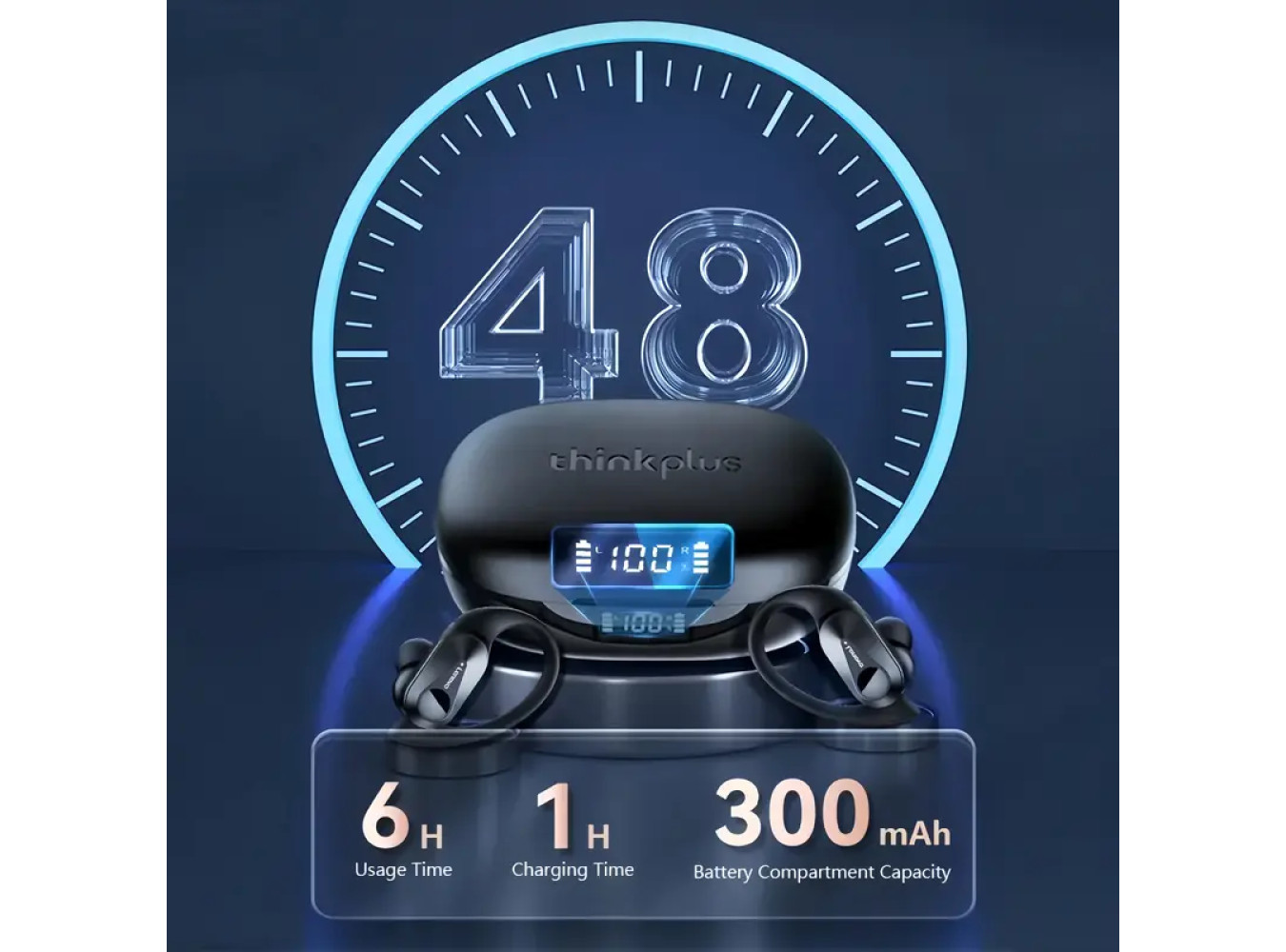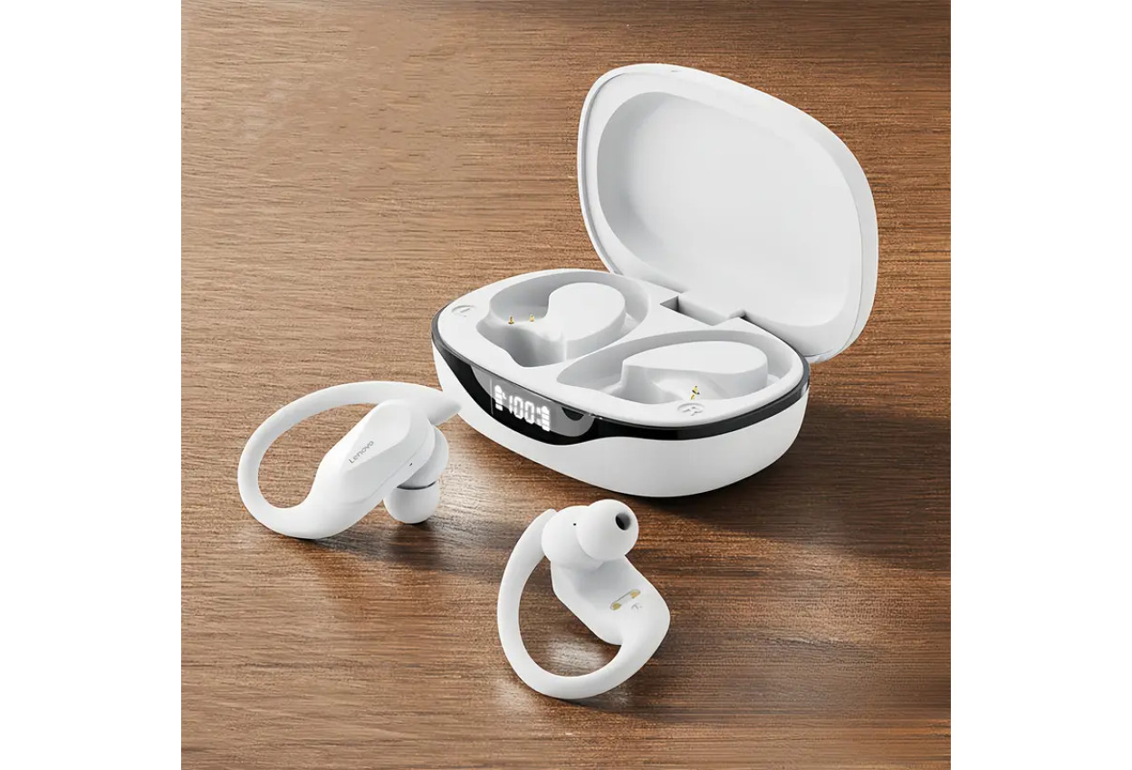 This is Brand New Lenovo LP75 earbuds are designed with a secure ear-hook style that helps keep them stable during sports or physical activities, making them less likely to fall out compared to traditional earbud designs. The ear hooks are made from liquid silicon plastic, providing a comfortable yet firm fit that adapts well to the ear shape, ideal for active users. These earbuds also feature IPX5 waterproofing, so they can handle sweat and light rain without damage, which adds to their suitability for sports.