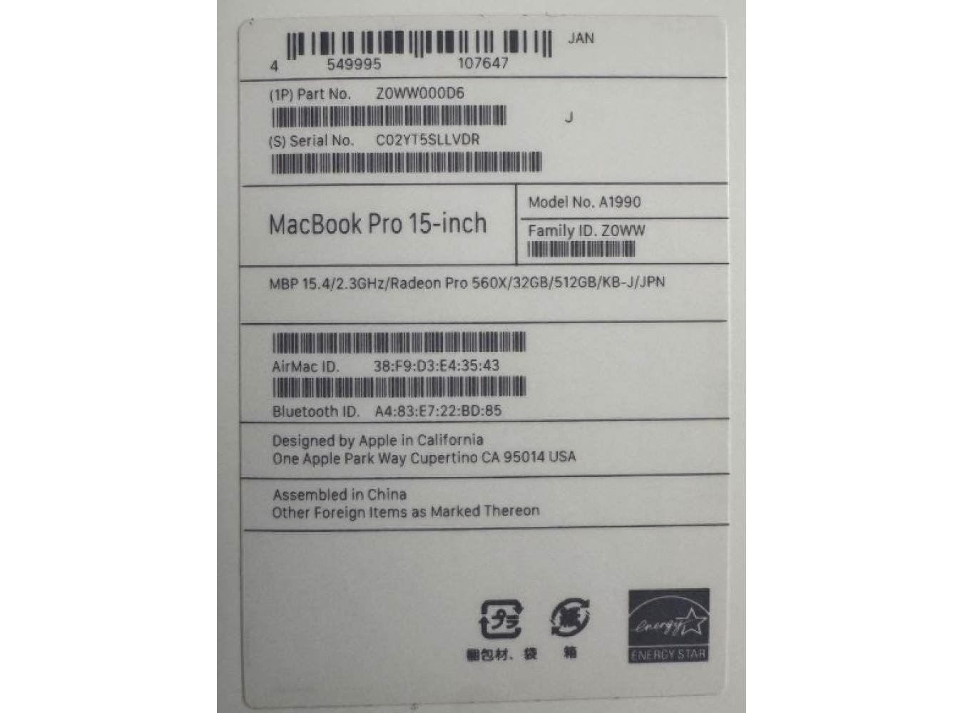 It almost like a new MacBook Pro 15 A1990, but its used PC. It does come with original box but no Power Adapter. Last Piece for sale !!