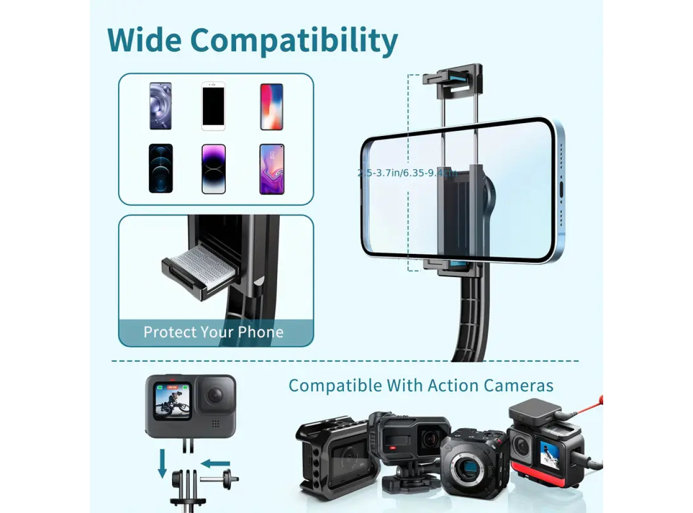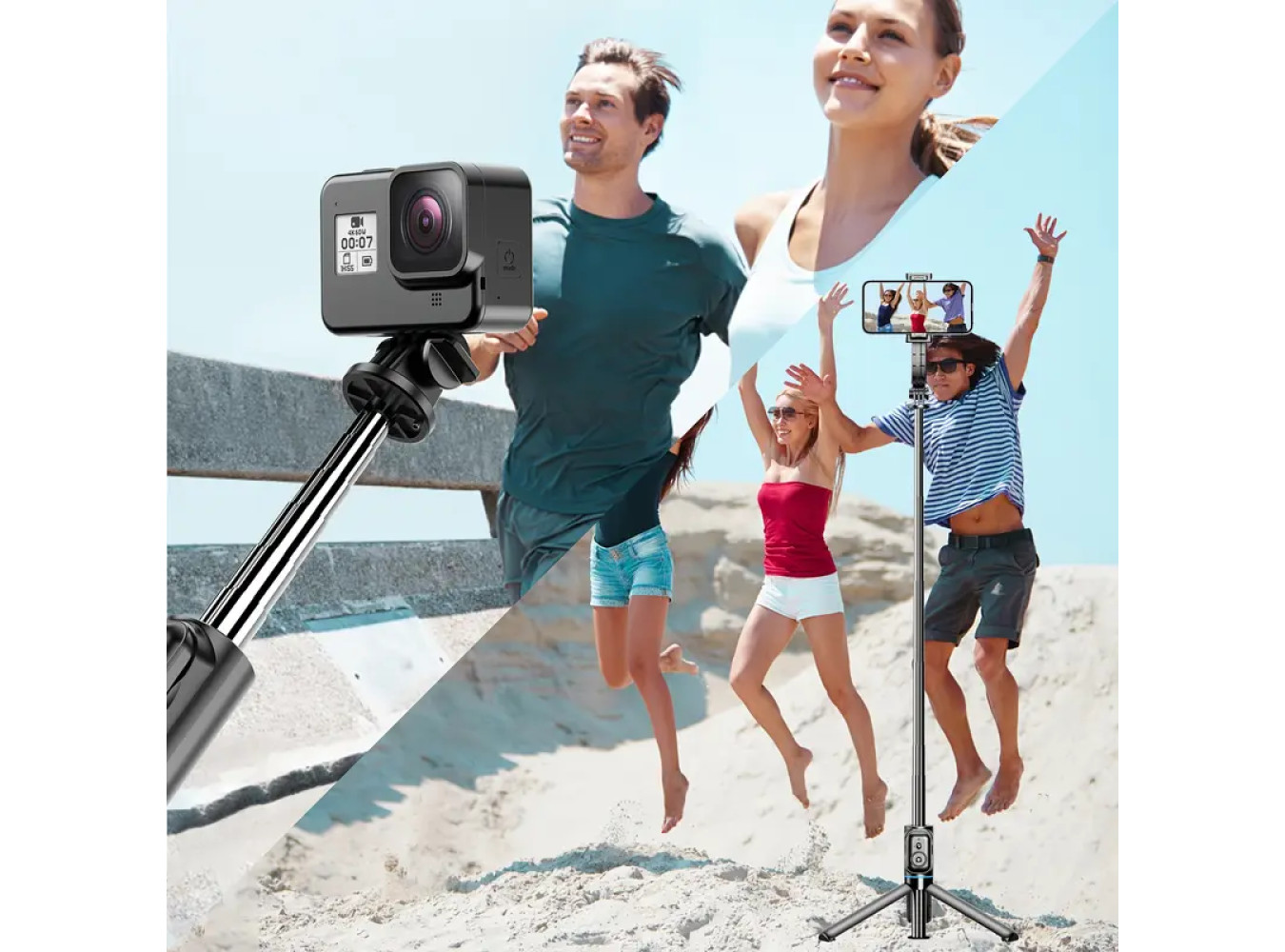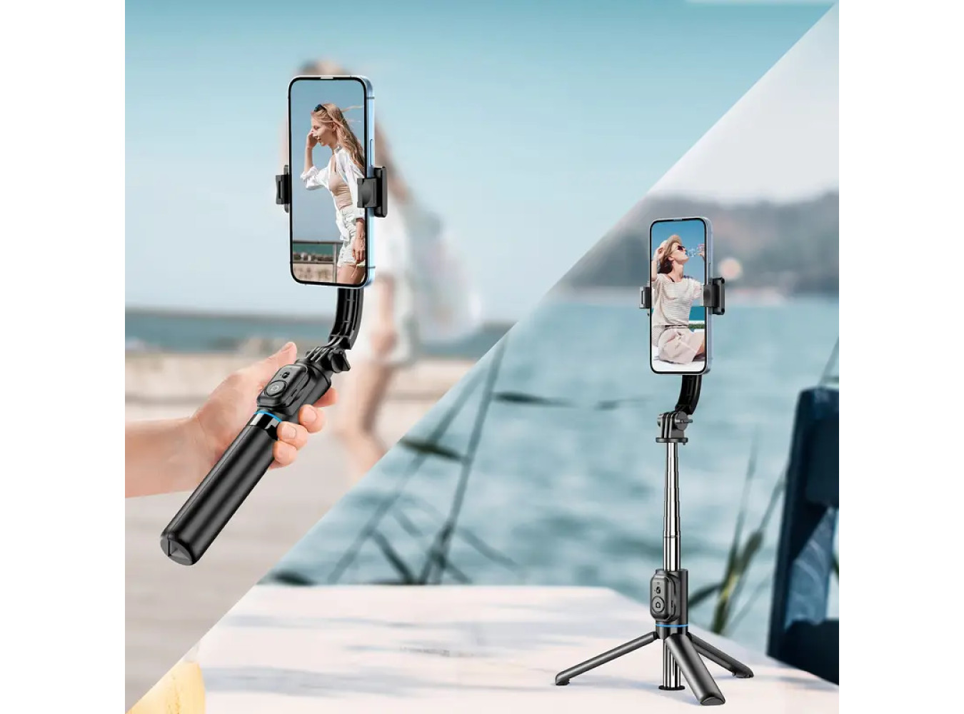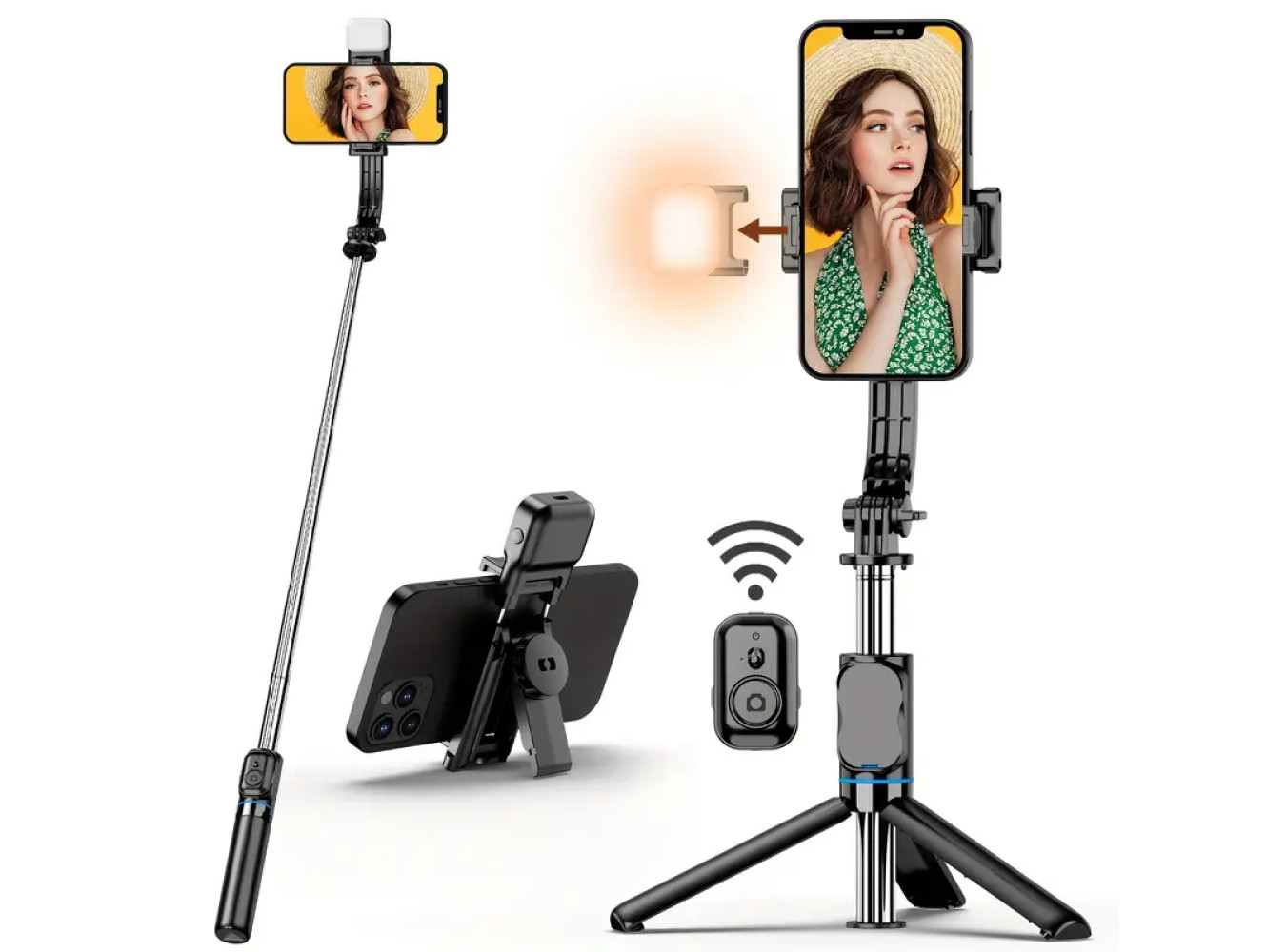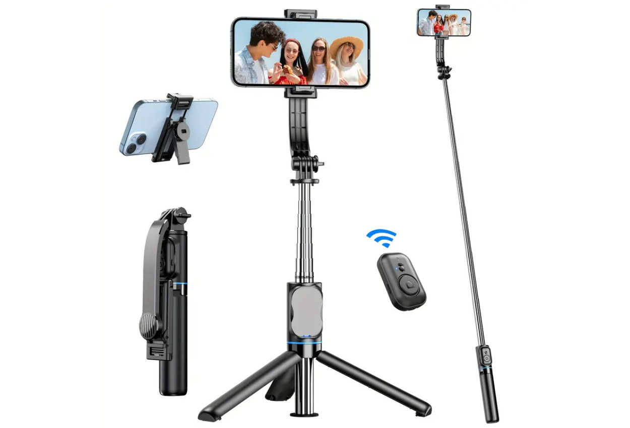 Extendable Selfie Stick Tripod with Phone Holder & Detachable Bluetooth Remote,