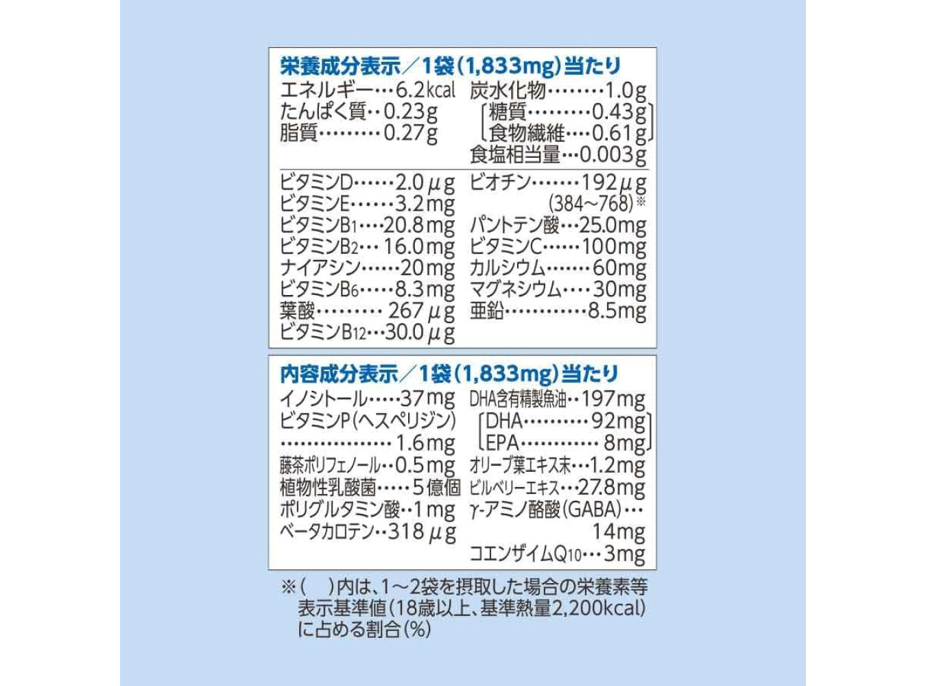 15 to 30 day supply (30 bags)[1 bag] Vitamin B&C, Triple Mineral & Lactobacillus & Carotene, DHA emulsifier & Hydroxythro Sole, Blueberry, GABA & Coenzyme Q10, Vitamin B Group, Vitamin B Group, Zinc