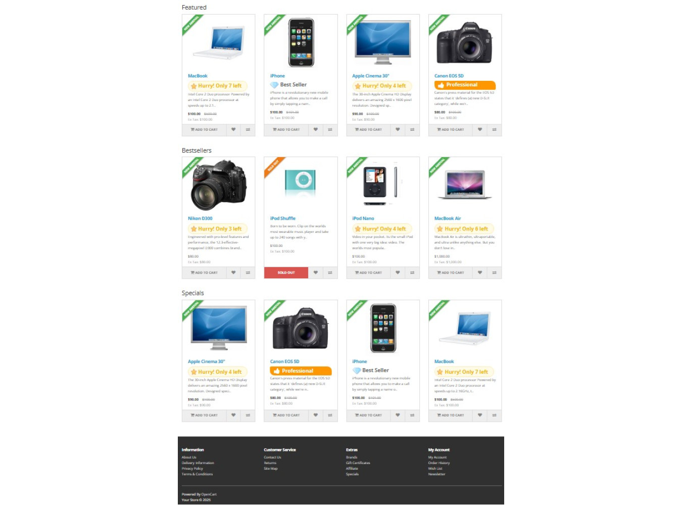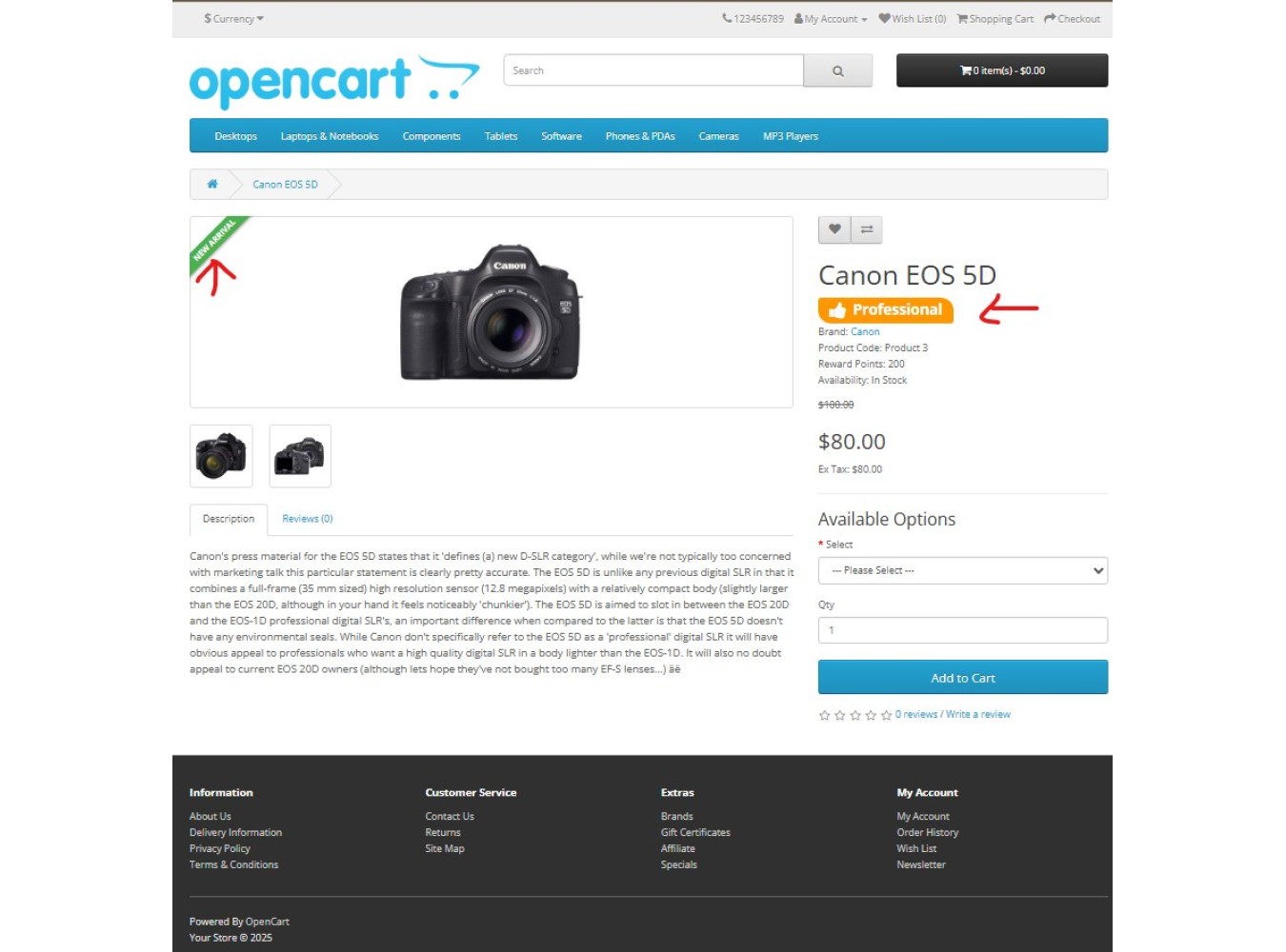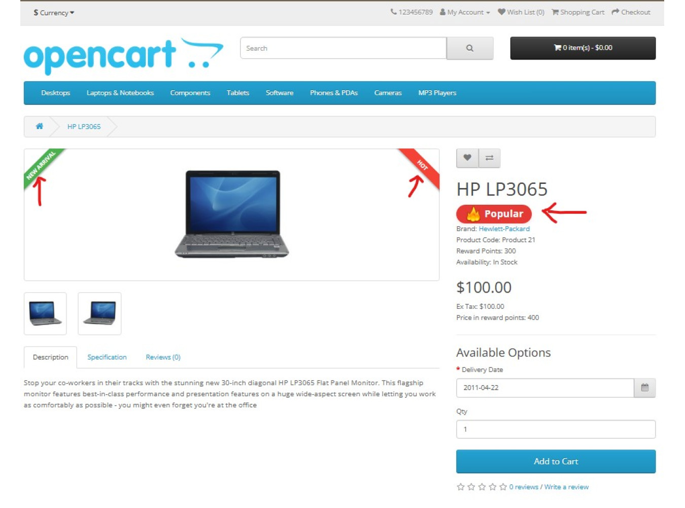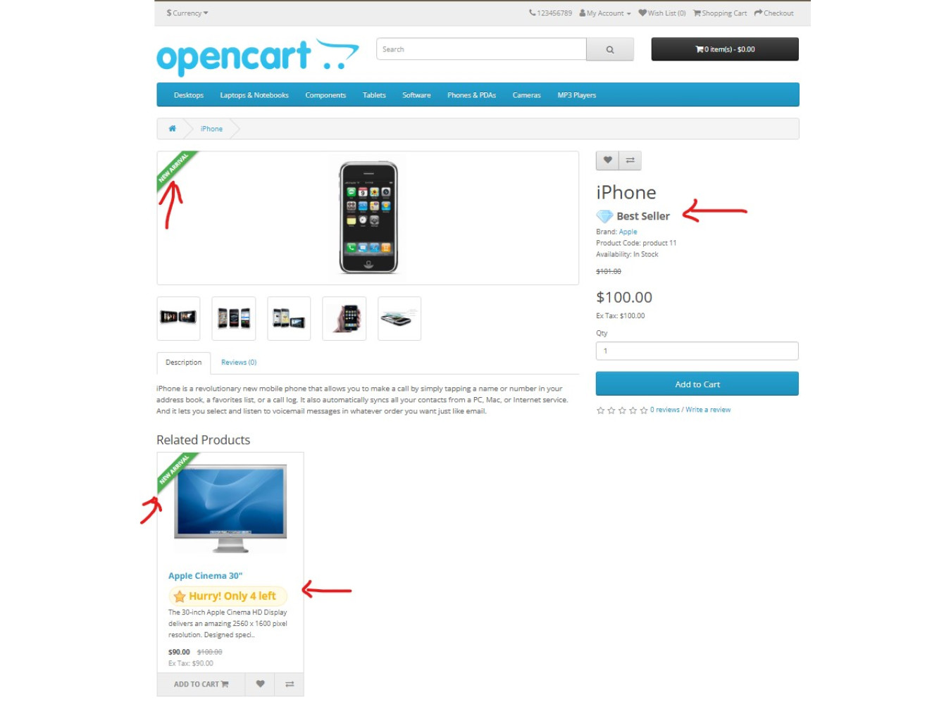 - Responsive & Safe: Enhanced JavaScript logic ensures badges appear correctly on standard OpenCart themes as well as custom themes (Journal support via selector logic) without breaking layouts.