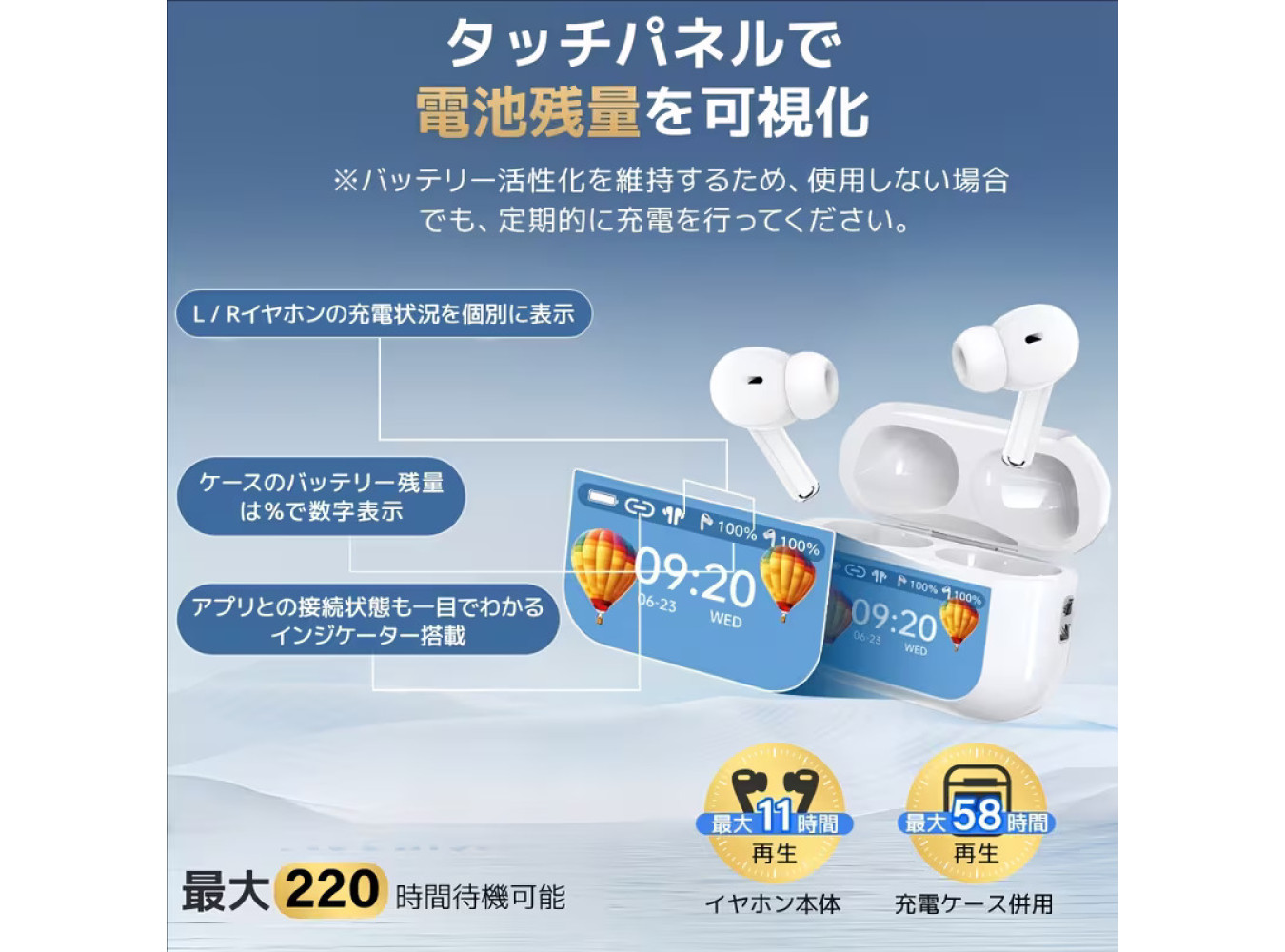 Wireless Earbuds with LCD/ANC [Black]