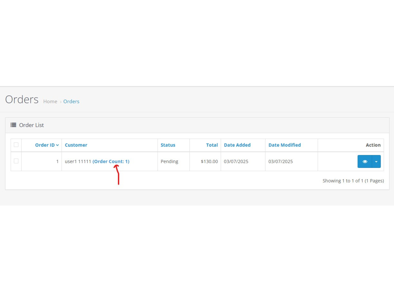 2- Sales > Orders > Column CUSTOMER , showing total number to orders
