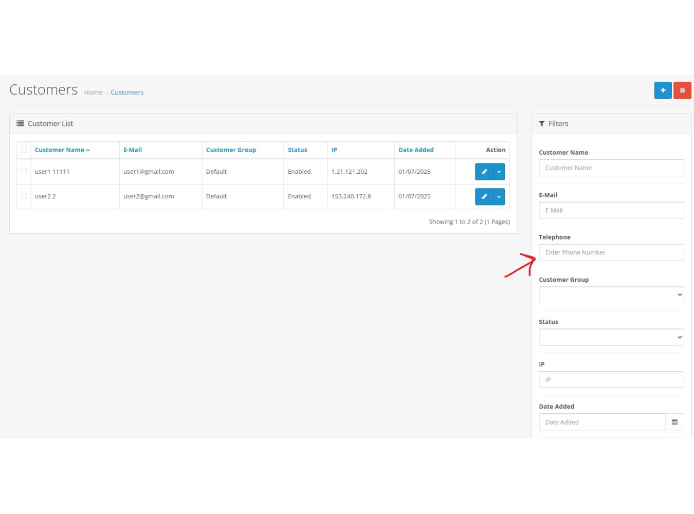 3- Customers > Customers > Filter is added to search customer by phone number