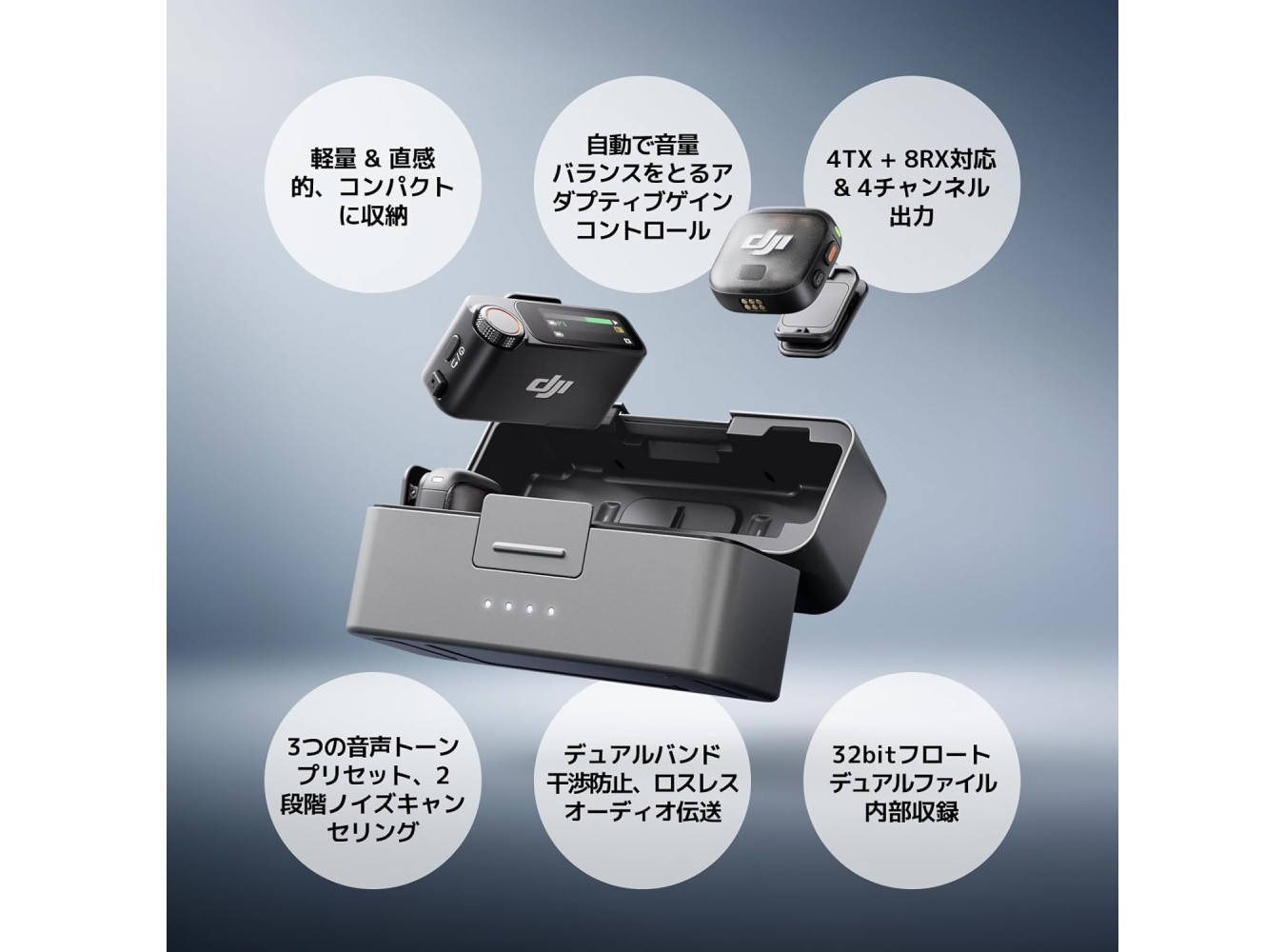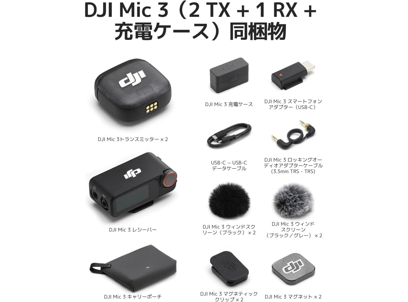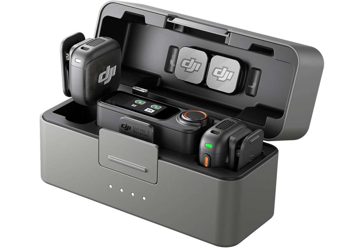 Includes 2 DJI Mic 3 TX, 1 RX, Charging Case, Mic 3 Smartphone Adapter (USB-C) and more. Easily records two voices and supports up to 28 hours of shooting